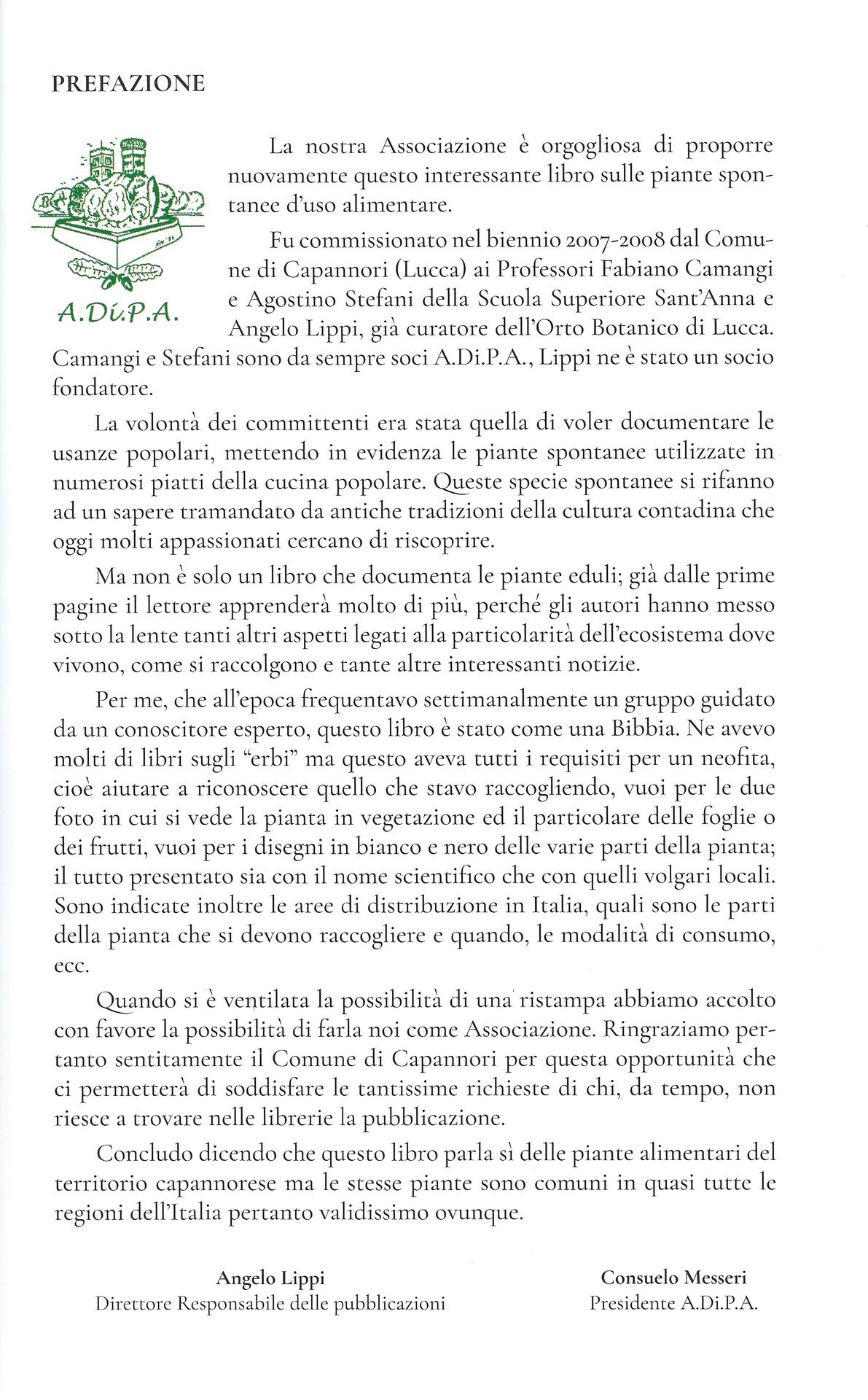 Con grande soddisfazione A.Di.P.A., previa autorizzazione del Comune di Capannori, ha promosso la sua ristampa lasciando invariato anche il prezzo di copertina (euro 15,00).