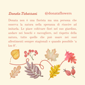 Dopo aver illustrato la tecnica di esecuzione i partecipanti, sotto la guida di Donata Tabarrani (@donataflowers), realizzeranno una vera e propria ghirlanda con tutto il materiale che verrà messo a disposizione dagli organizzatori.