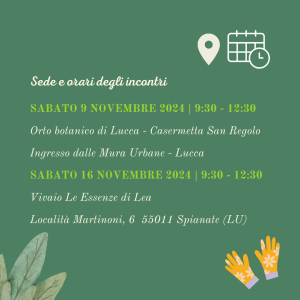 Sabato 16 novembre | 9:30 – 12:30 Vivaio Le essenze di Lea, Località Martinoni, 6 – 55011 Spianate (LU)