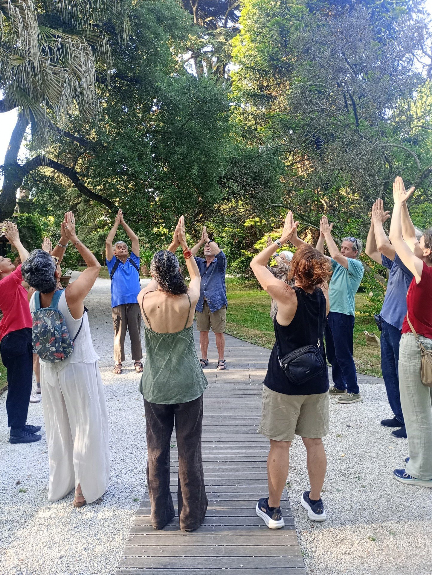 All’ombra leggera degli alberi monumentali dell’Orto la nostra guida Alice Lombardi ha accompagnato con voce e parole i partecipanti svelando storie e segreti di questo luogo prezioso nel cuore della città, passando il testimone alla splendida Aline Nari, ideatrice della “Danza in silenzio”, che ha trasportato i presenti in un mondo magico e poetico, fondendo il movimento con la natura in una guida davvero unica all’interno dell’Orto Botanico.