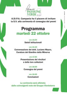 A.Di.P.A. Sezione Campania è lieta di inviarvi venerdì 20 ottobre 2023 alla cerimonia di consegna dei premi: “Passione in Verde” giunta alla X edizione.