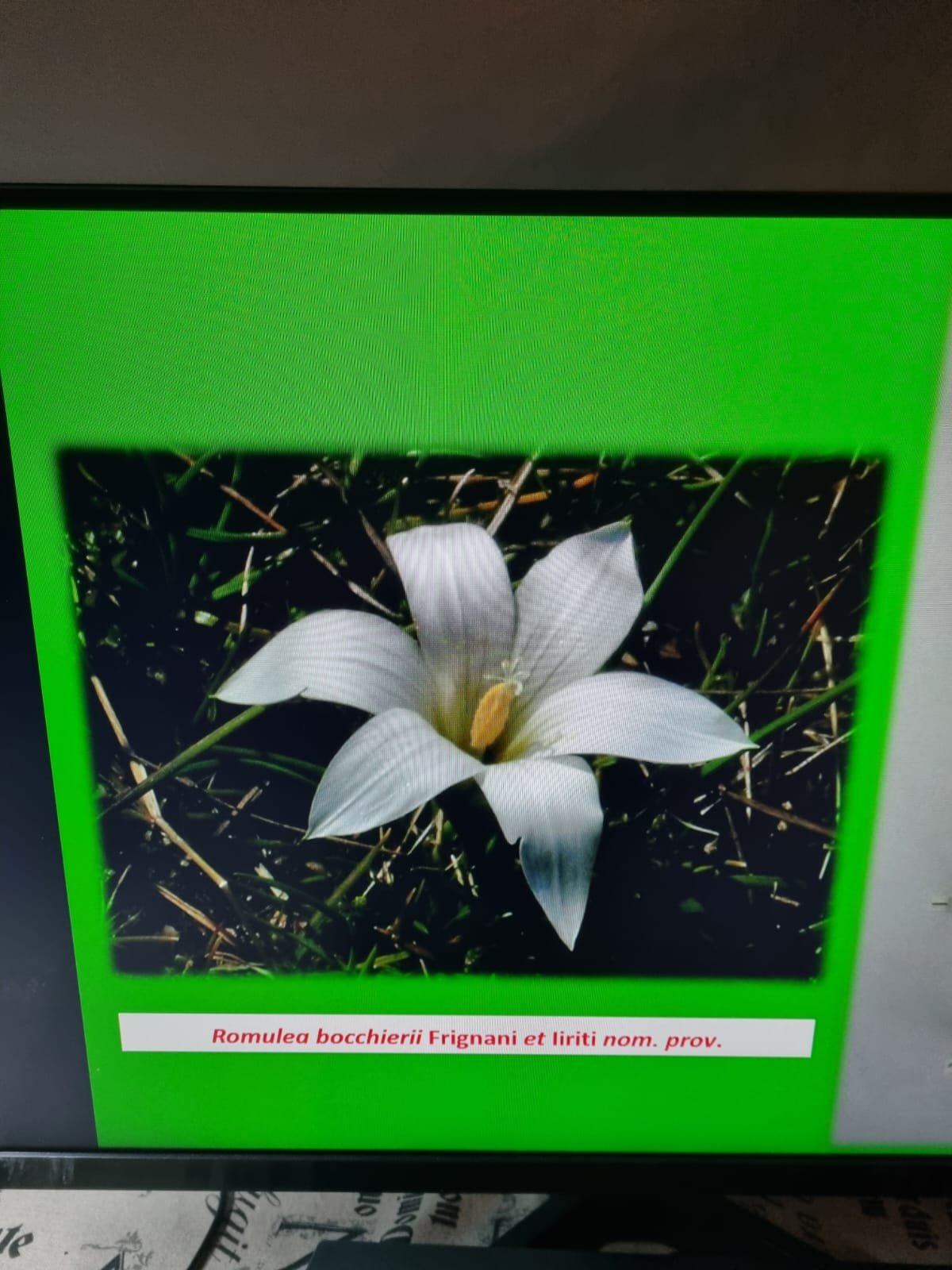 Il relatore ci ha fornito un excursus sulle vicende scientifiche ed umane che hanno accompagnato questa scoperta, ampliando poi l’orizzonte al Genere Romulea ed al suo comportamento peculiare di endemismo disgiunto tra l’Africa subsahariana ed il Mediterraneo (in particolare nelle sue isole piccole e grandi, ed ancora una volta la Sardegna, ove egli stesso ha descritto la specie esclusiva Romulea bocchierii).
