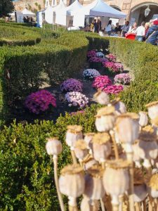 Quest’anno il crisantemo, fiore autunnale per antonomasia, era al centro della scena, letteralmente poiché costituiva scenografiche aiole nello spazio antistante l’imponente mole del Castello, ed idealmente per avere ispirato laboratori e presentazioni svoltisi in parallelo.