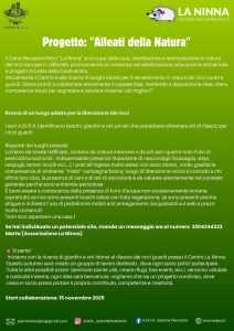 Il centro “La Ninna” recupera, cura e reintroduce in habitat idonei, grazie al lavoro prezioso dei suoi volontari, i ricci malati o infortunati raccolti via via sul territorio.