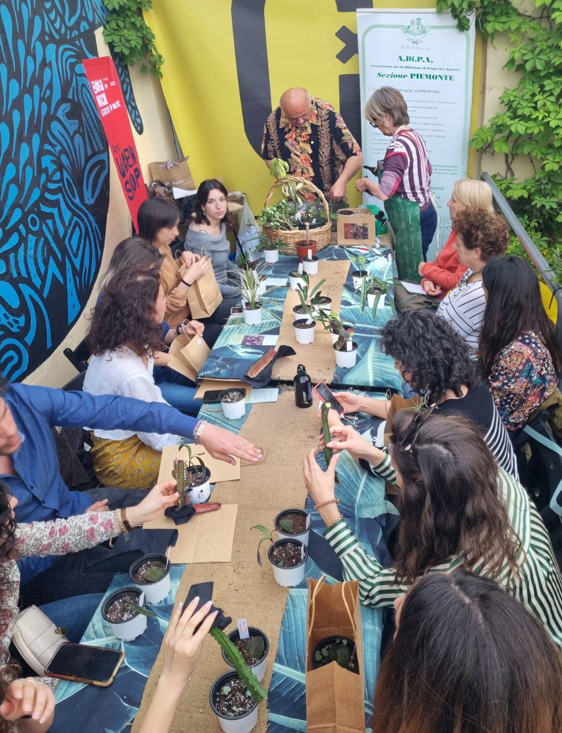 Il format questa volta è stato “interattivo”: tutti hanno portato talee da scambiare ed invasare, in uno “swap”, come si definisce in gergo anglosassone questo tipo di eventi, che siano essi dedicati ad abiti, oggetti, libri od altro.