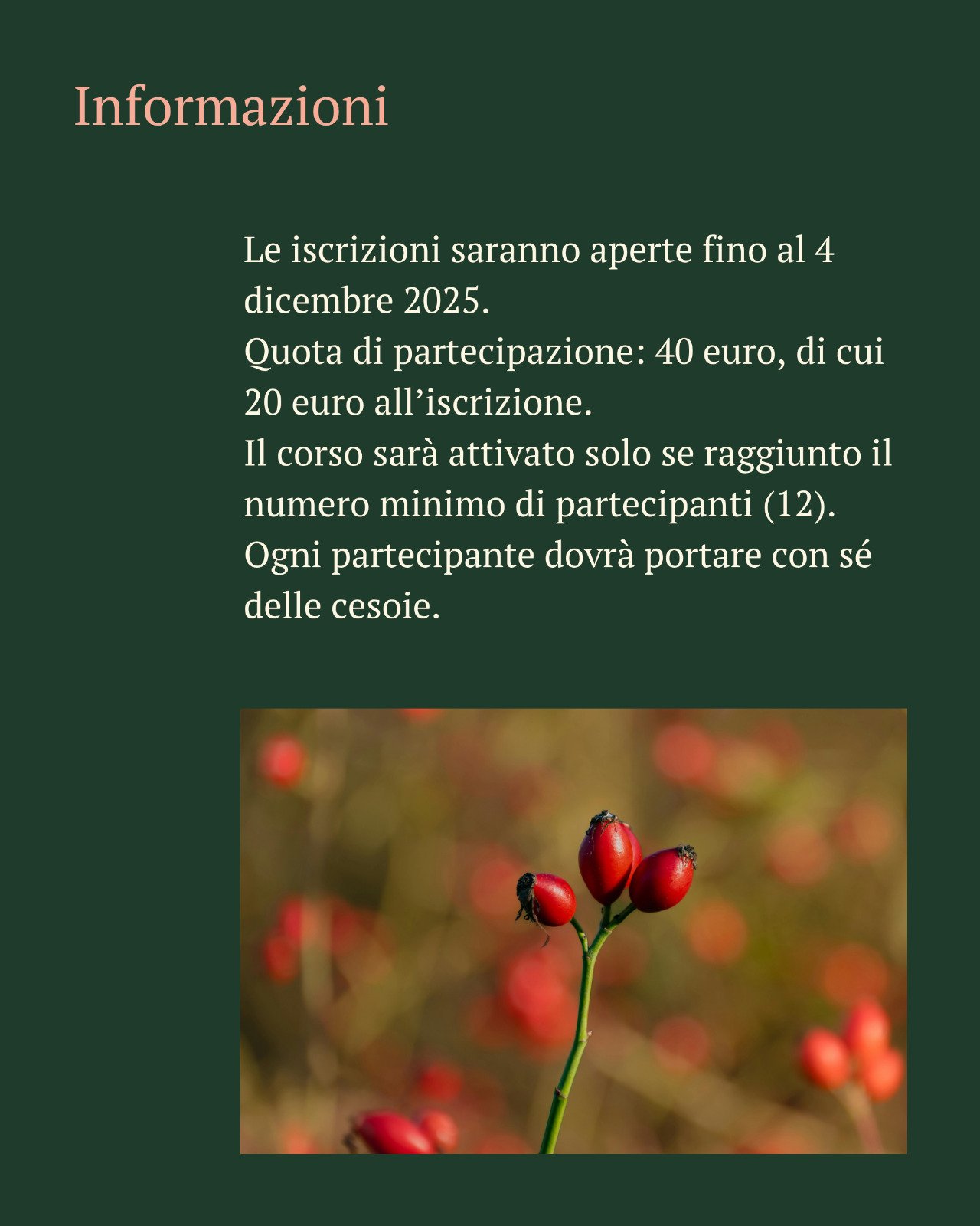 Il corso è organizzato in collaborazione con l’Orto botanico di Lucca e l’Amministrazione comunale.