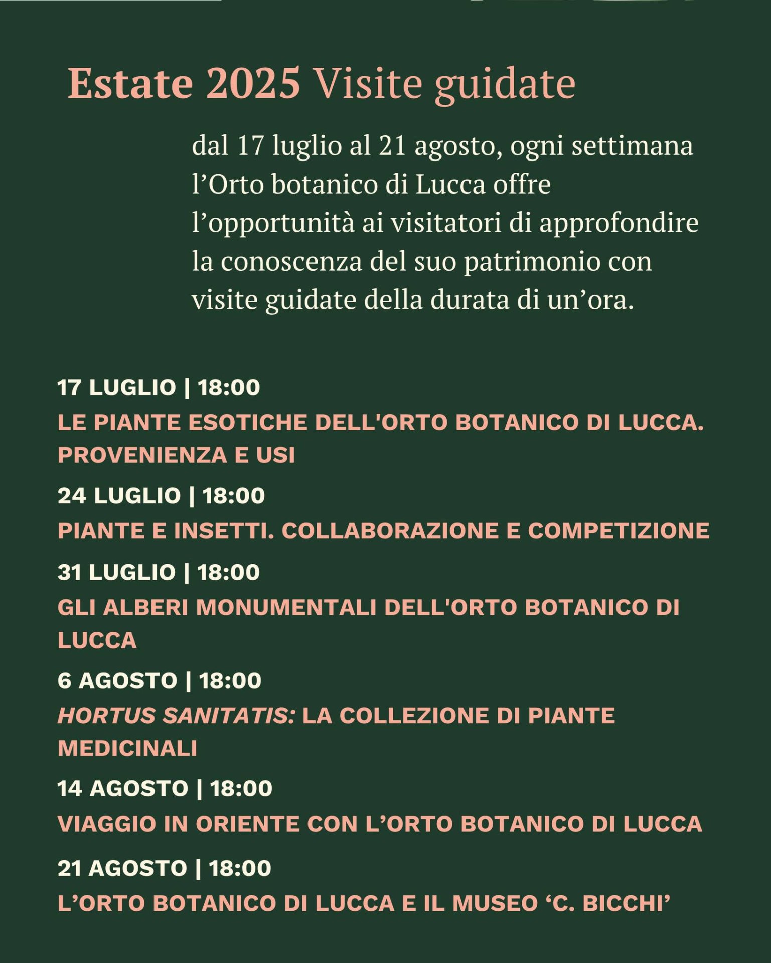 Estate con A.Di.P.A. Sede Centrale: visite guidate insolite presso l’Orto botanico di Lucca Archivio: Eventi Sezione: Sede Centrale 19 Agosto 2025 Tipo evento: Conferenze e corsi Sezione: Sede Centrale