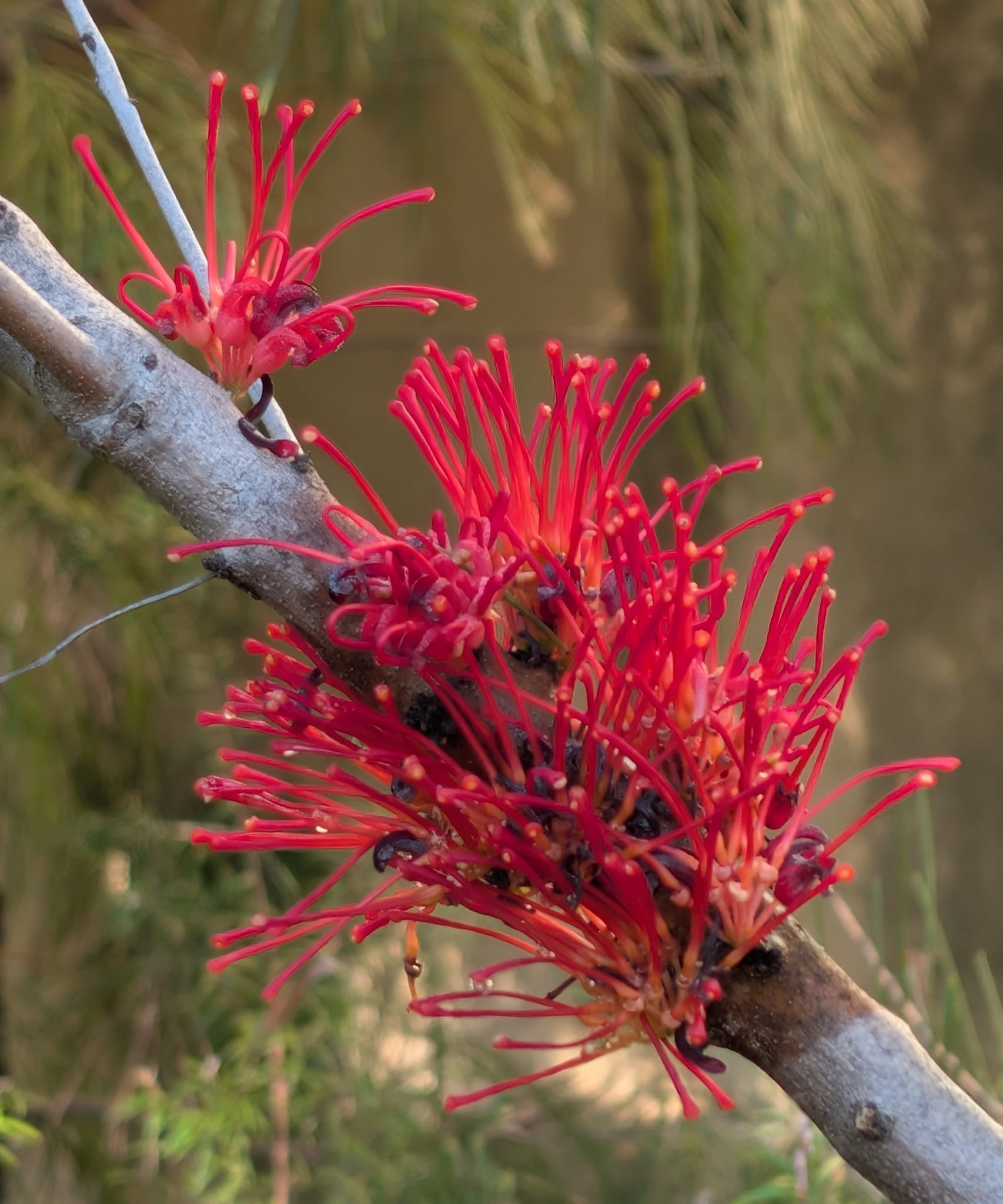 Le fioriture già ben presenti, l’impeccabile manutenzione e la cartellinatura hanno accompagnato la nostra passeggiata tra Eucaliptus, Melaleuca, Grevillea, Banksia, Hakea Brachychiton e molti altri Generi esclusivi del Continente “down under“, dall’aspetto sempre insolito rispetto alla vegetazione del nostro Emisfero.