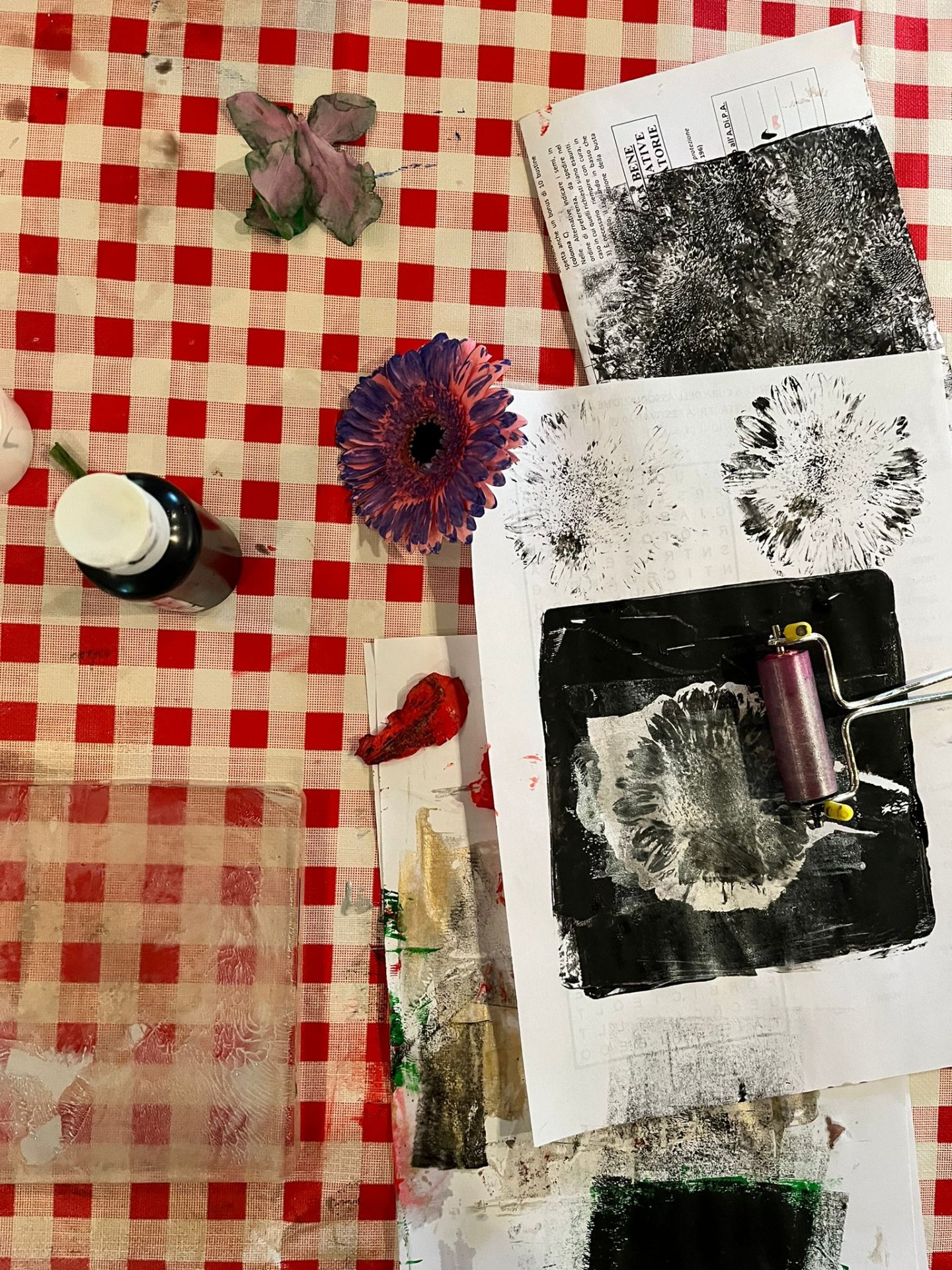 In seguito, si sono cimentati in un’attività creativa utilizzando la tecnica del “Gelli Plate” per realizzare personalissime opere pittoriche a tema sui fiori!