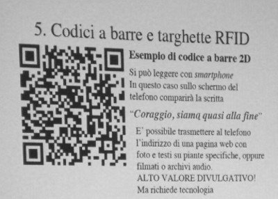 Pare quindi che il codice a barre “QR” impresso su dei cartellini tradizionali sia al momento la scelta migliore nel caso si voglia investire in una maggiore fruibilità della cartellinatura delle piante degli orti botanici, sia da parte dei visitatori che degli addetti ai lavori.