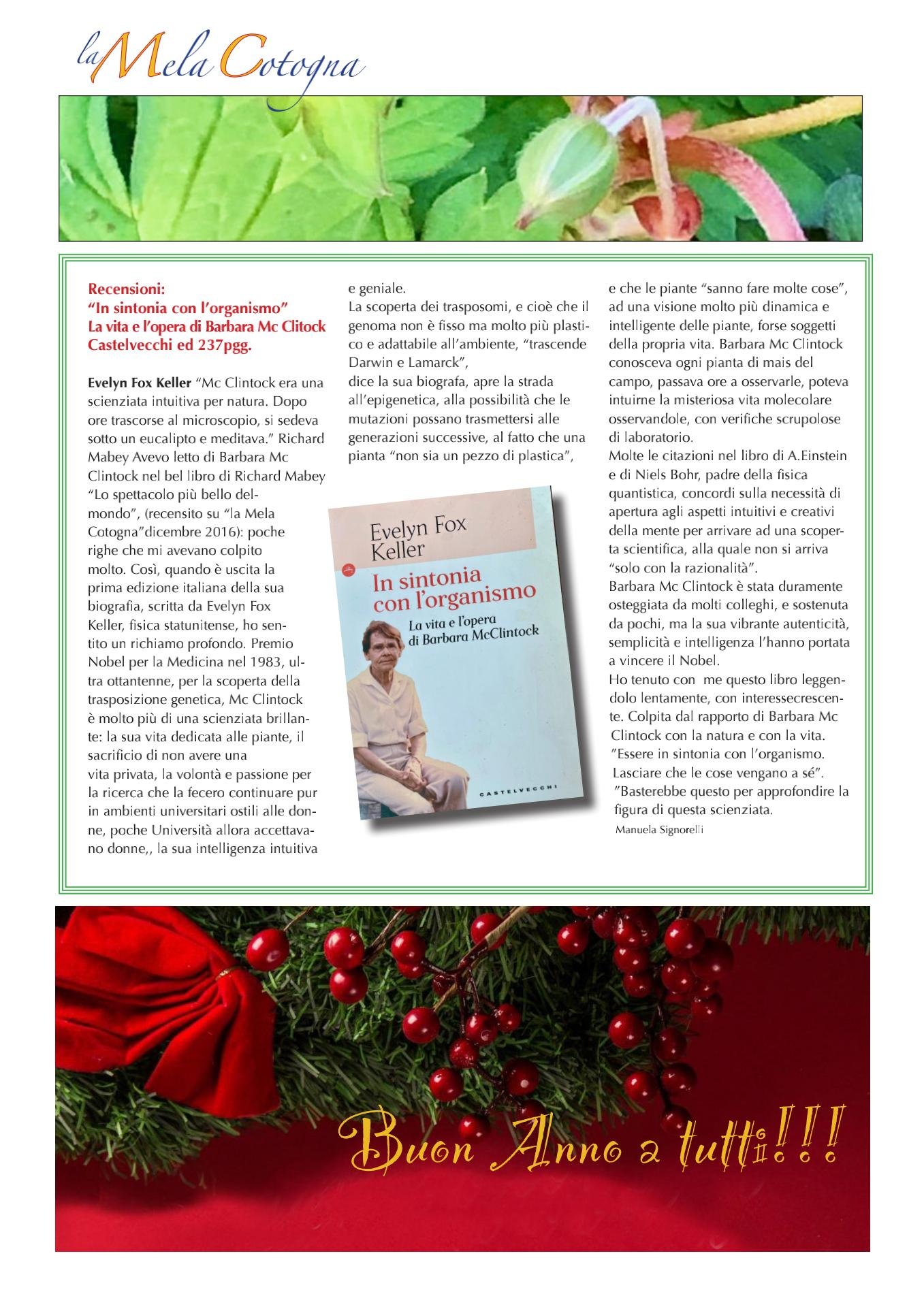 Abbiamo deciso di mantenere il nome Mela Cotogna, in ricordo della rivista della nostra Sezione (molti numeri sono ancora disponibili): è stata scelta per questa prima volta una recensione già “pubblicata “, per non dimenticare la figura di una donna, Premio Nobel per la Medicina a 83 anni, una vita spesa per lo studio delle piante: Barbara McClintock.