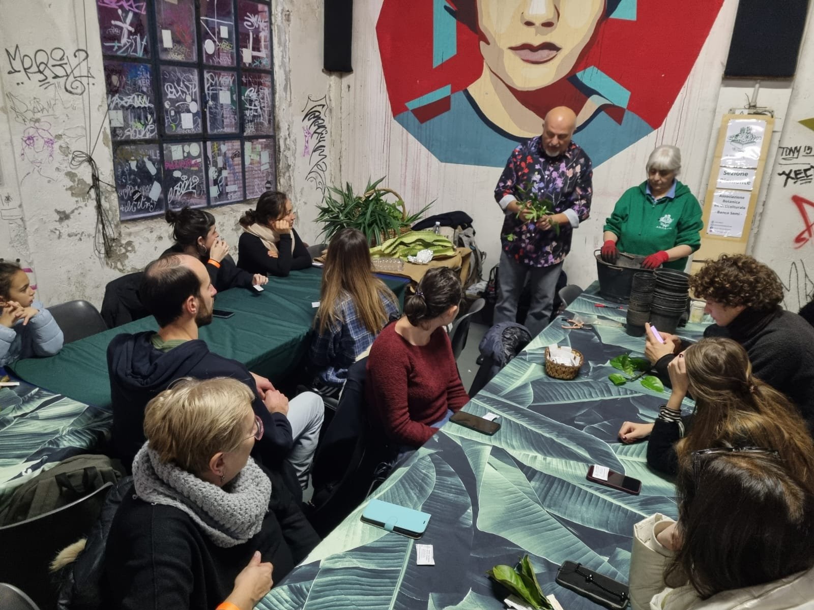 Il nostro coinvolgimento era finalizzato ad una presentazione proprio sulle specie adatte ai nostri luoghi di vita (in particolare in questa stagione meno propizia alla vita all’aperto) ed alla storia dell’ingresso delle piante nelle nostre case, come prodromo ad un laboratorio in cui abbiamo guidato una ventina di partecipanti nella realizzazione di vasi e vasetti con talee di Ficus, Philodendron, Euphorbia e Dracaena.