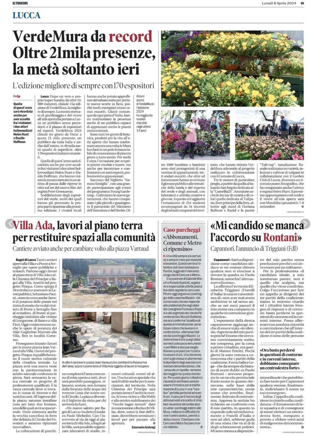Moltissimi i visitatori – 21 mila presenze, più dell’edizione 2023 – che hanno potuto fare acquisti presso i 170 espositori che hanno animato la Mostra Mercato di PRIMAVERA sulle Mura Urbane della Città di Lucca.